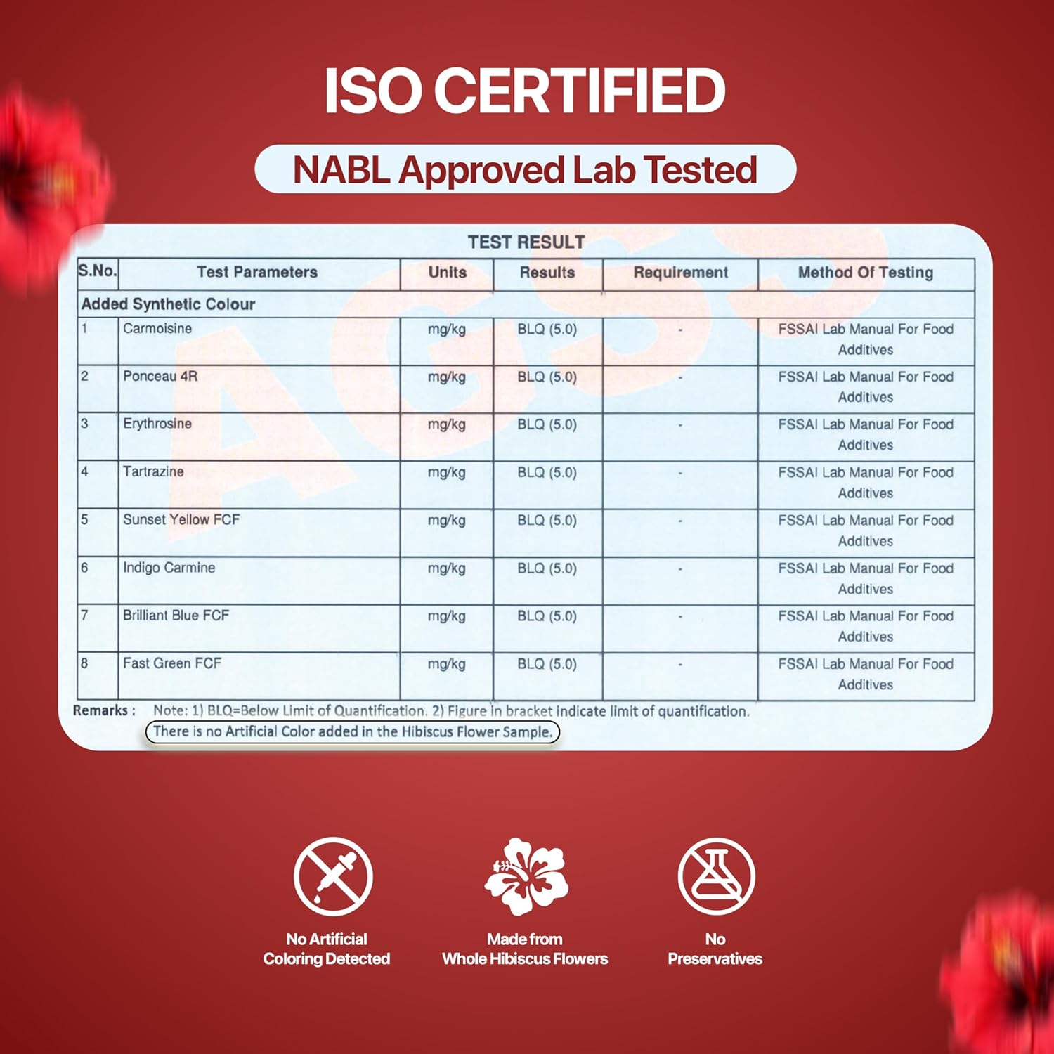 - Key Features: It is a caffeine-free herbal infusion made from handpicked hibiscus flowers and is marketed as 100% natural with no added preservatives or artificial colors.